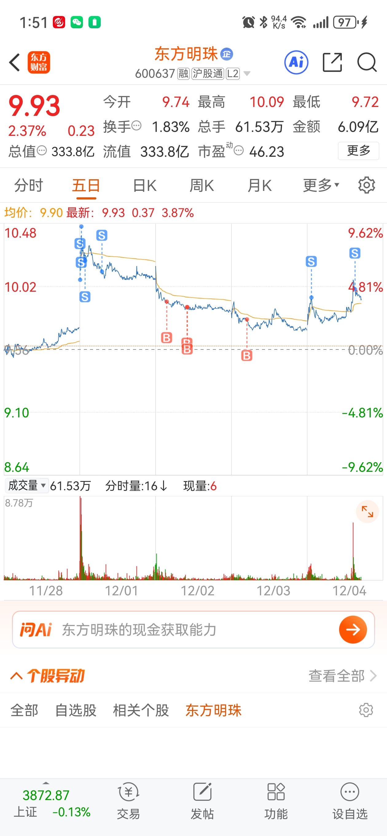 $东方明珠(SH600637)$ 继续玩,下来加仓