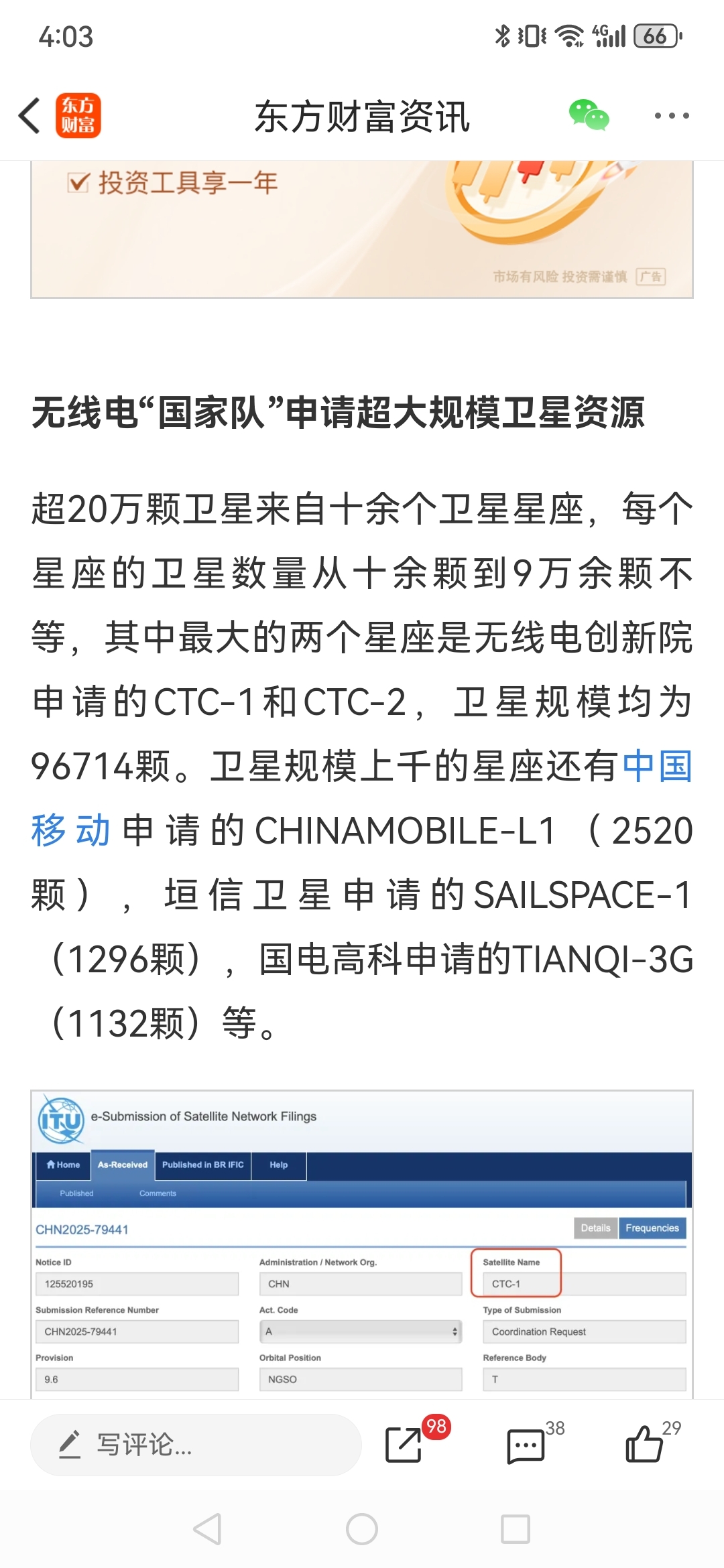 周一继续一字了,坦信卫星