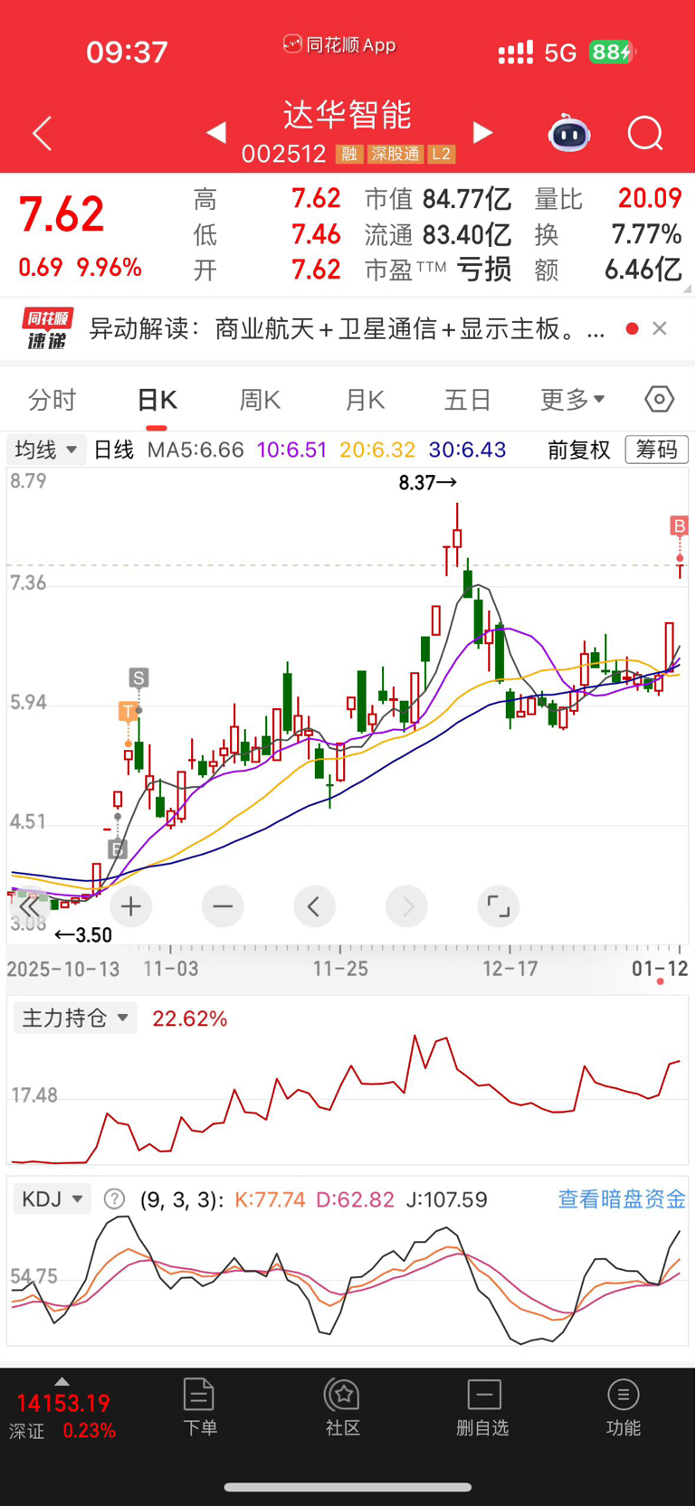 1月12日:赚钱行情谁都可以赚。模拟盘买入:达华智能,东方明珠。操作记录请勿跟票