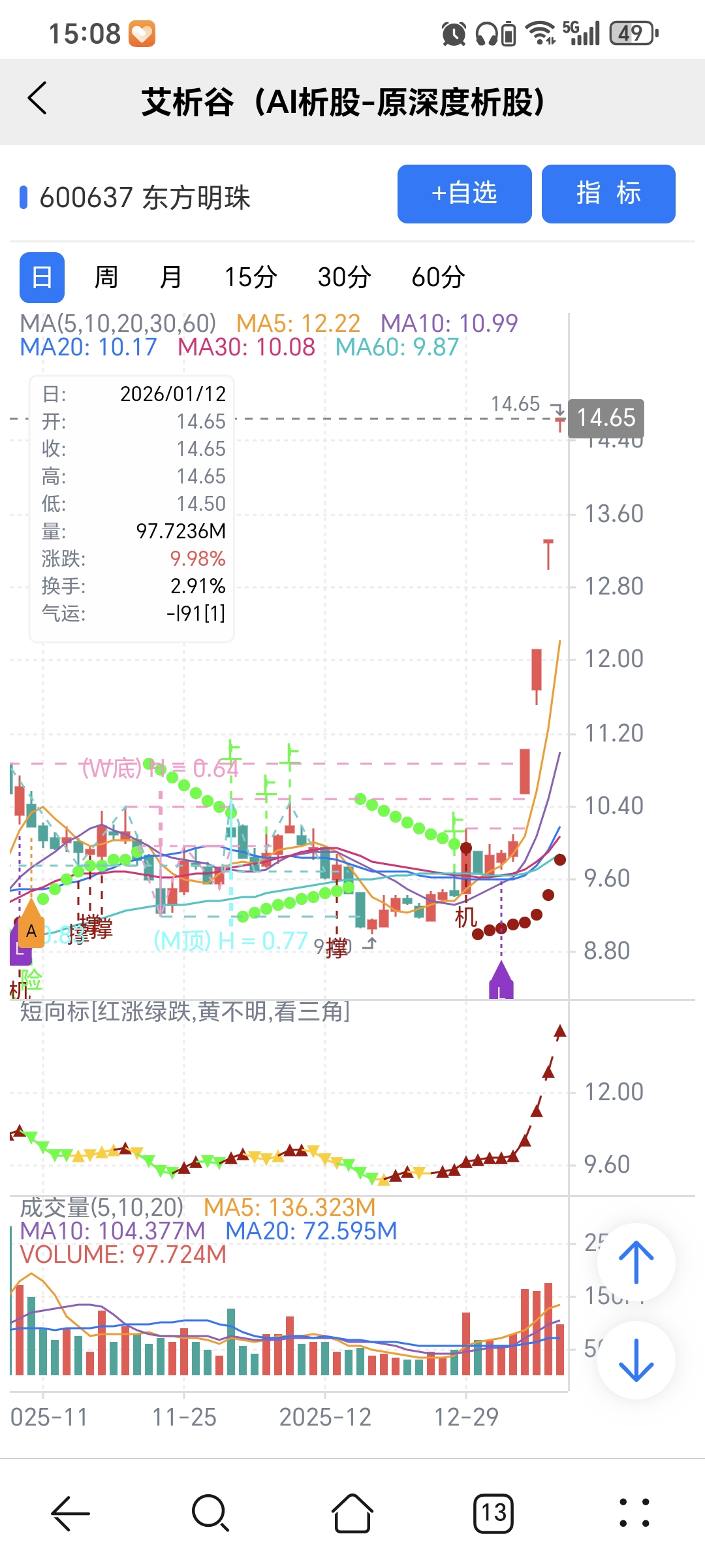 风险:股价下穿艾短波或红变绿、绿字。