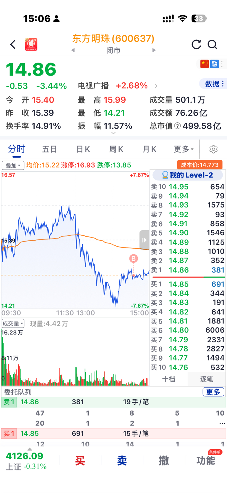 $东方明珠(SH600637)$ 龙头首阴,今天先占个先手