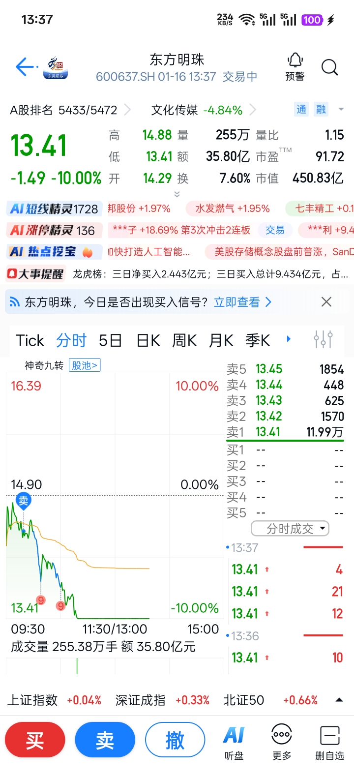 $东方明珠(SH600637)$ 昨天尾盘进的,亏3个点,果断卖出
