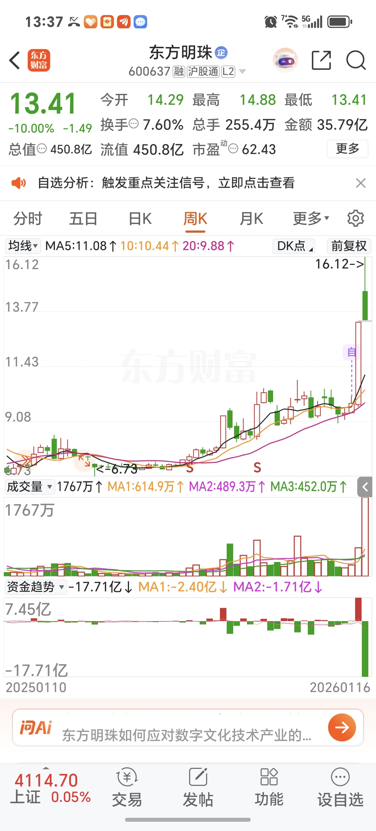 $东方明珠(SH600637)$ 这周线怎么看,得调整七八周才不?