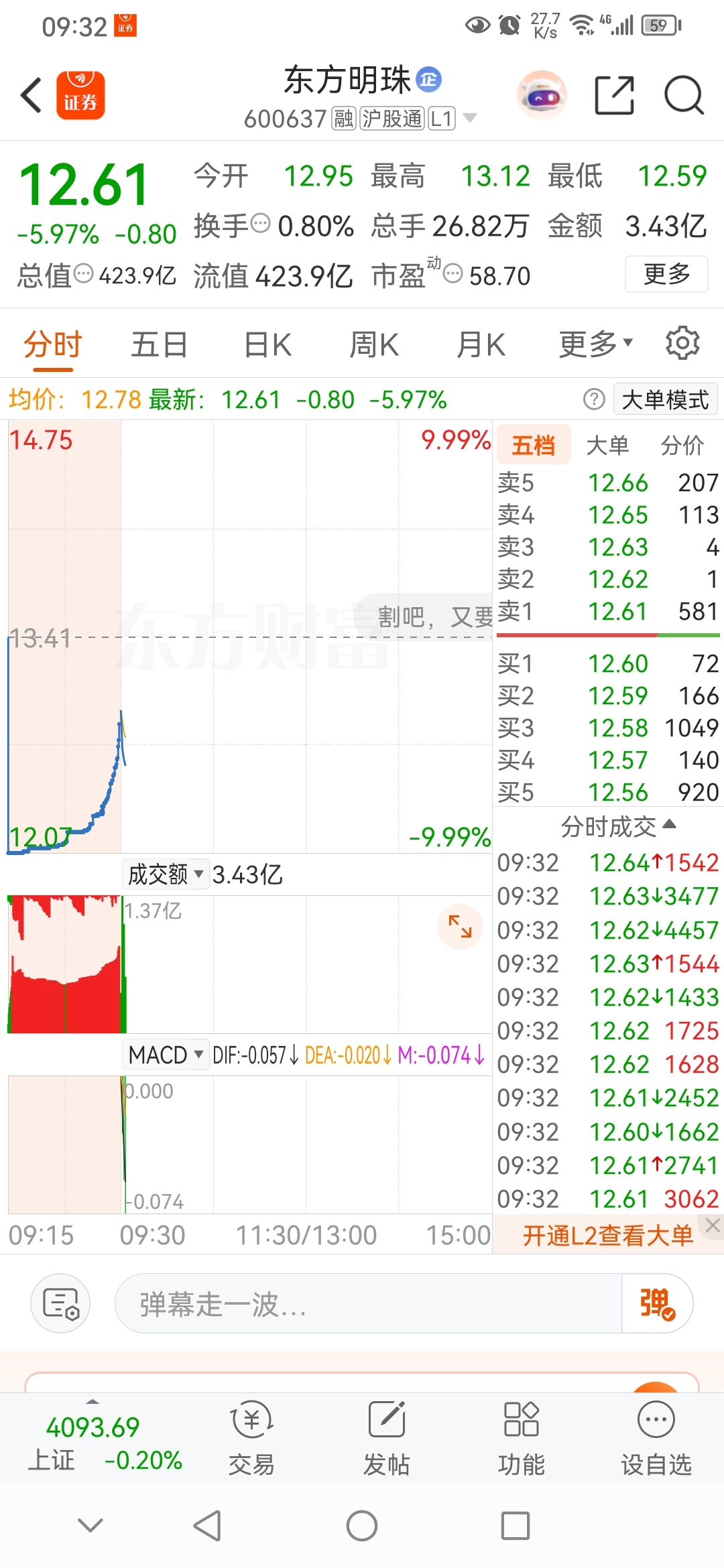 集合竞价从跌停拉升,很多匹配和未匹配的大买单。结果都是骗人的,开盘就是大跌!