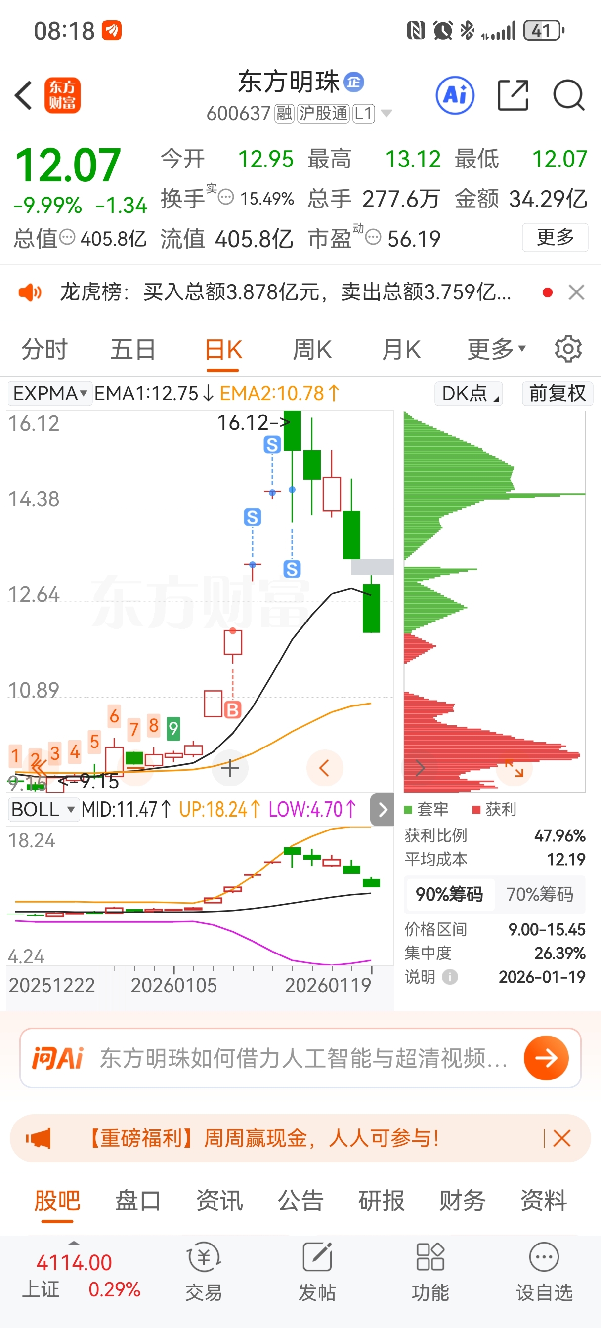 $东方明珠(SH600637)$ 琐发育,不浪