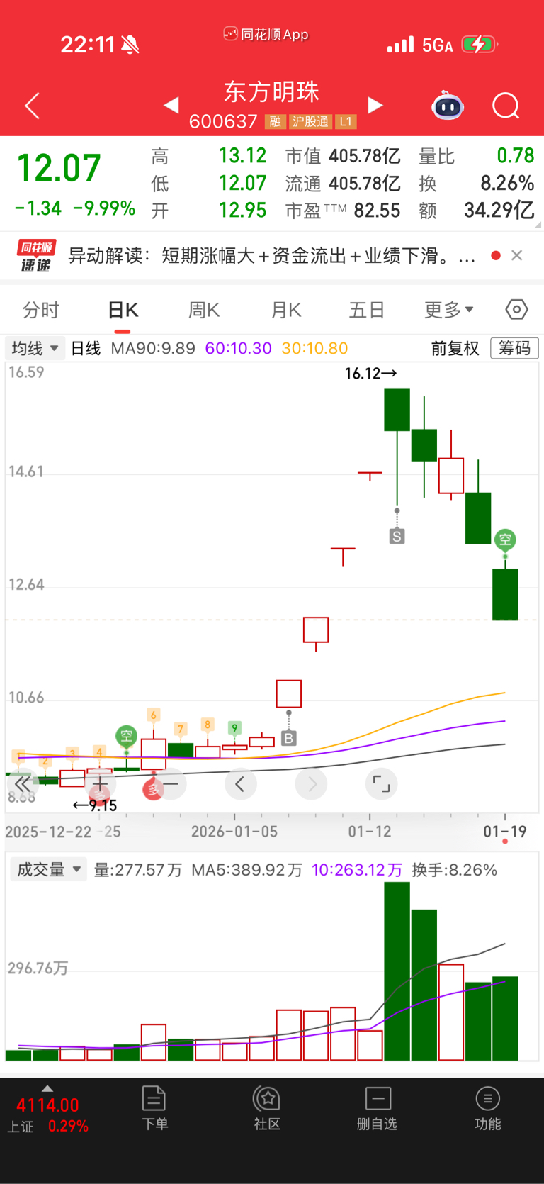 $东方明珠(SH600637)$ 见好就收