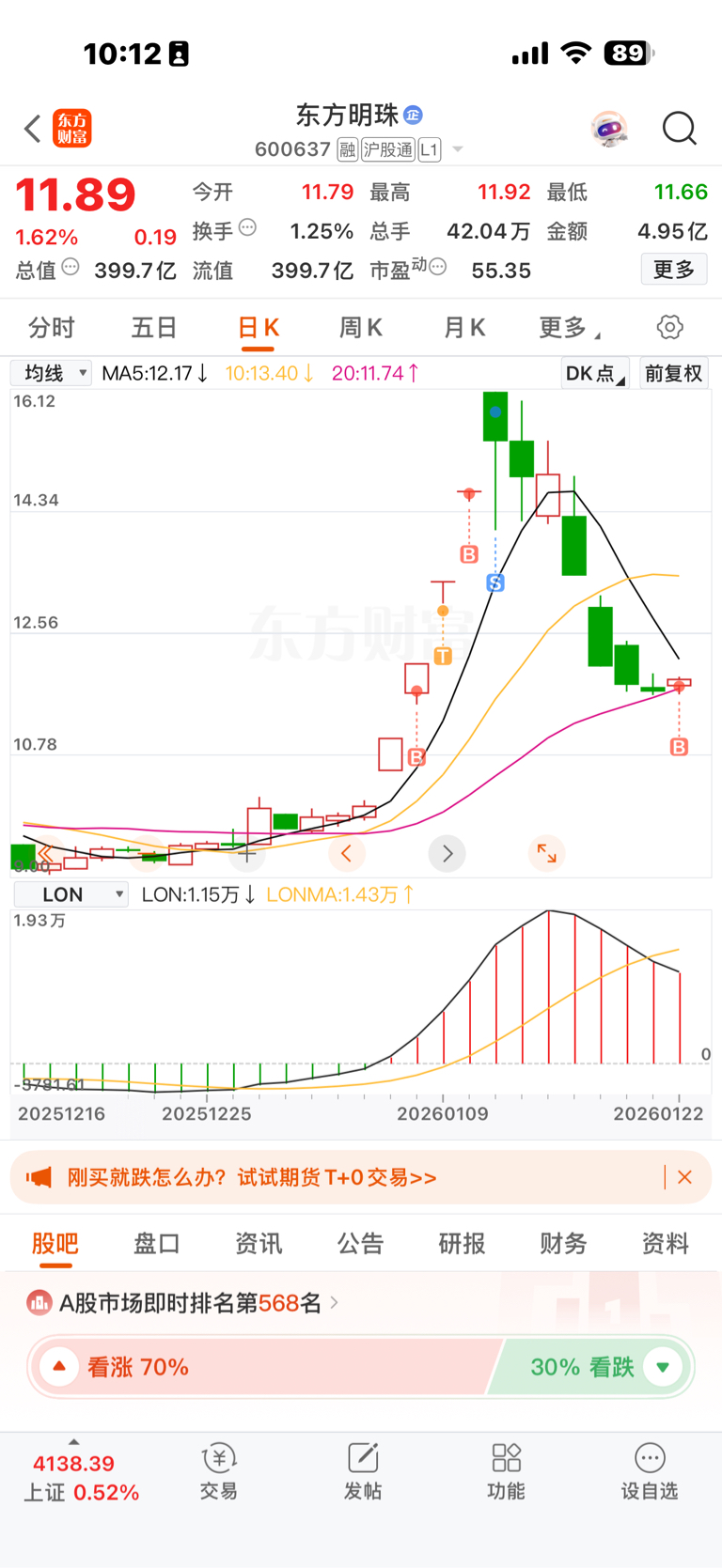 $东方明珠(SH600637)$ 回来看看,怒赚一个点