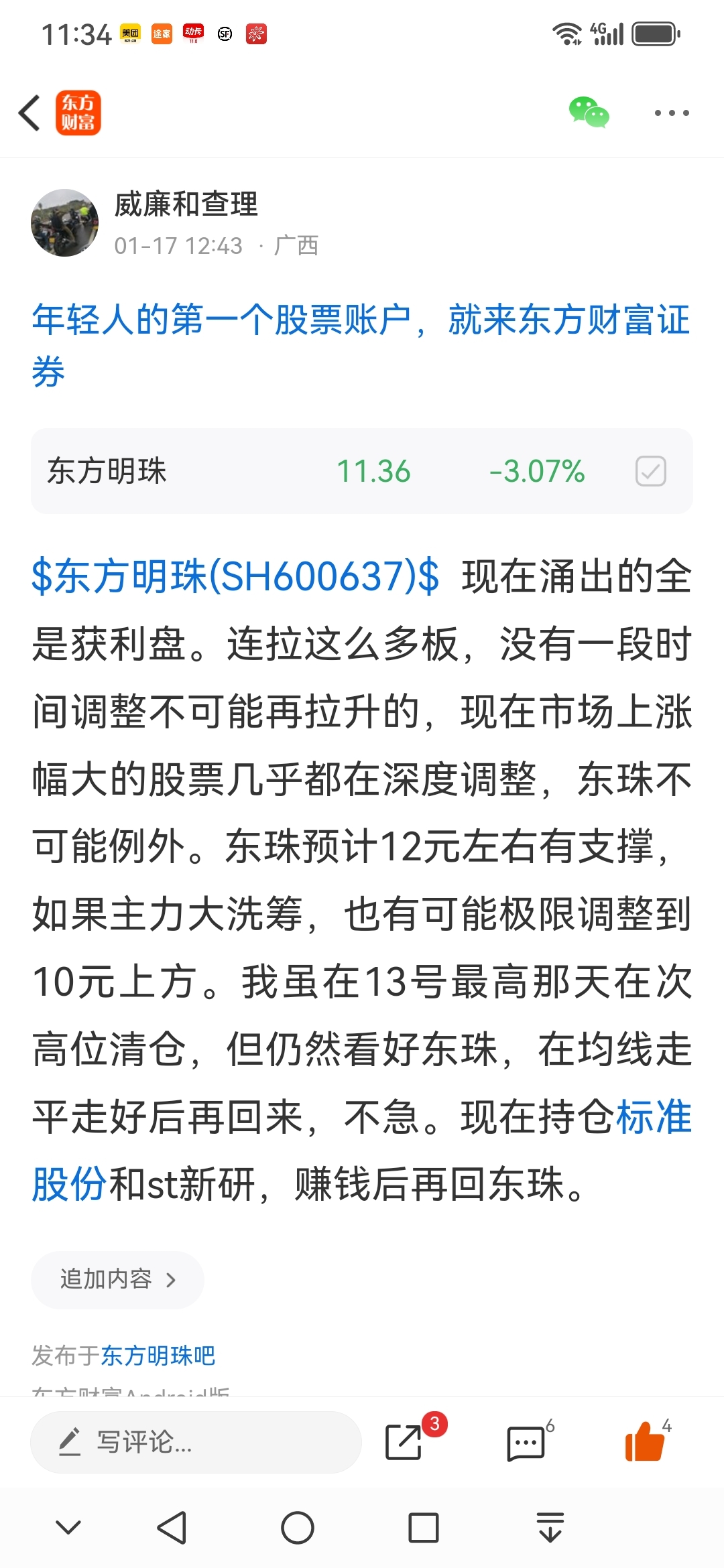 $东方明珠(SH600637)$ 我在1月16日第一次跌停已预测到它后面的走势,已印证。主力高位已出货,但没有走,调整至5月还会拉升。