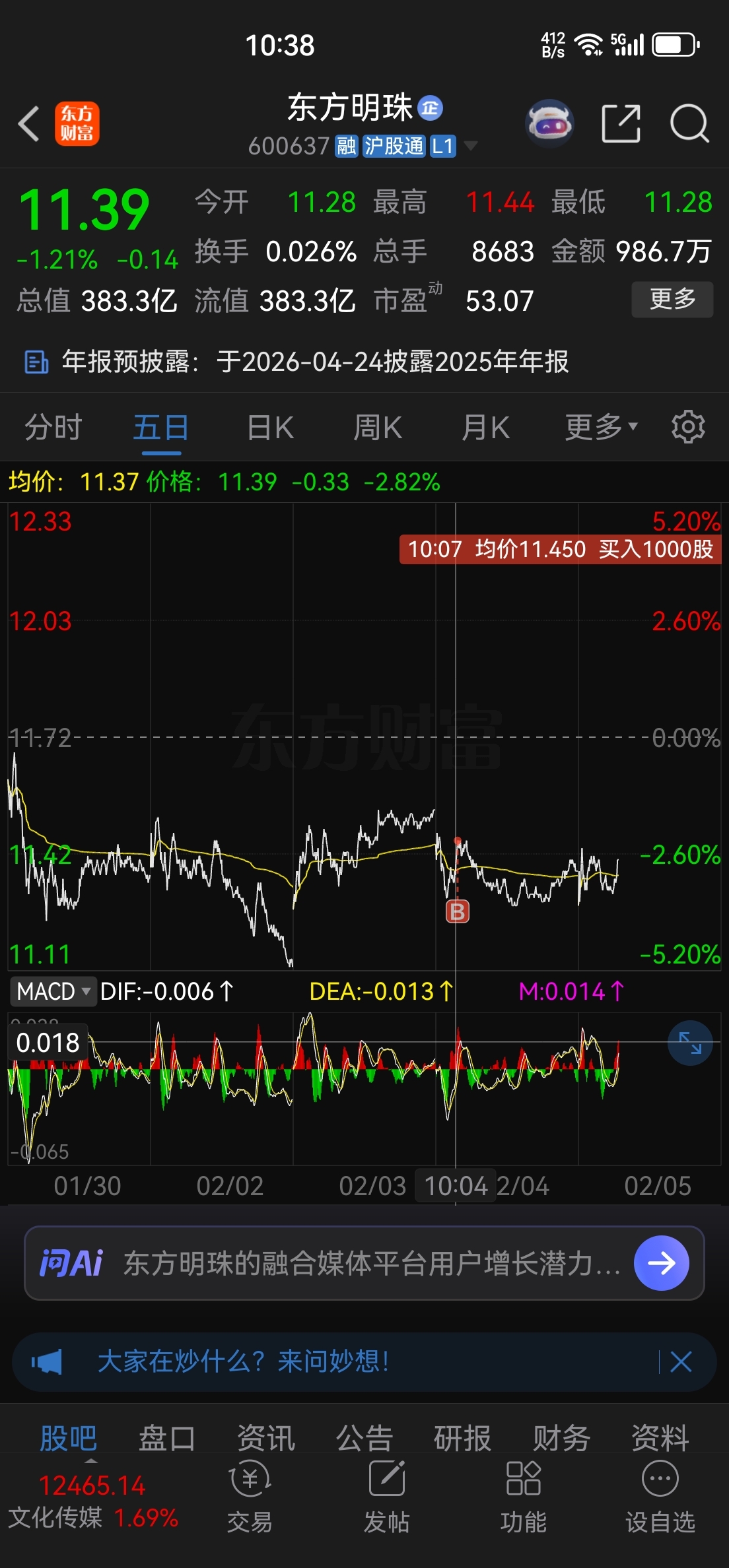 $东方明珠(SH600637)$ 买了1000股而已,看把你吓得