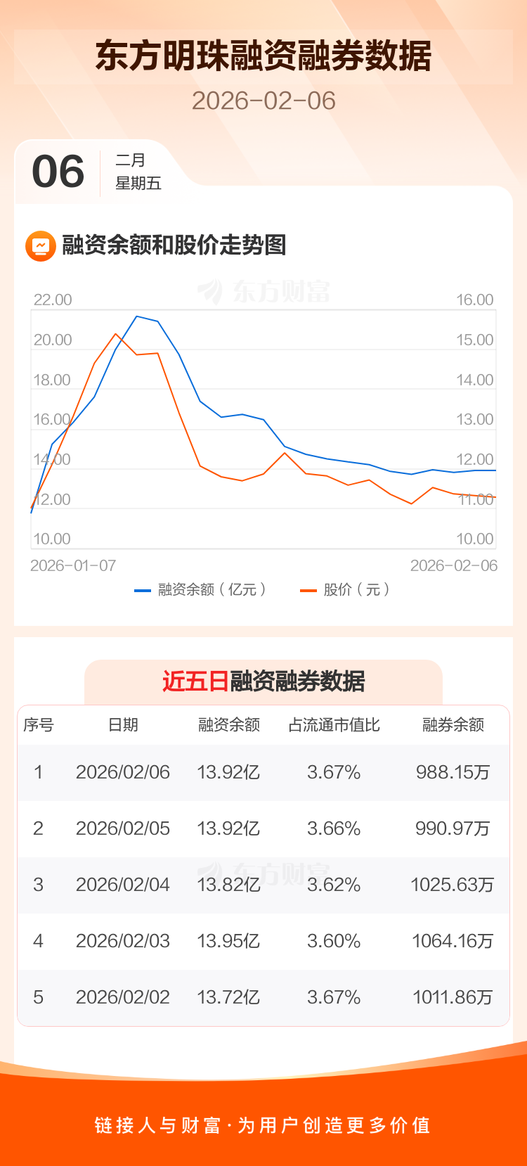 交易所最新数据显示,东方明珠于2026年2月6日获融资买入7638.30万元,融资偿还7710.13万元,当日融资净偿还71.83万元。目前,该股融资余额13.92亿,占流通市值比例为3.67%。