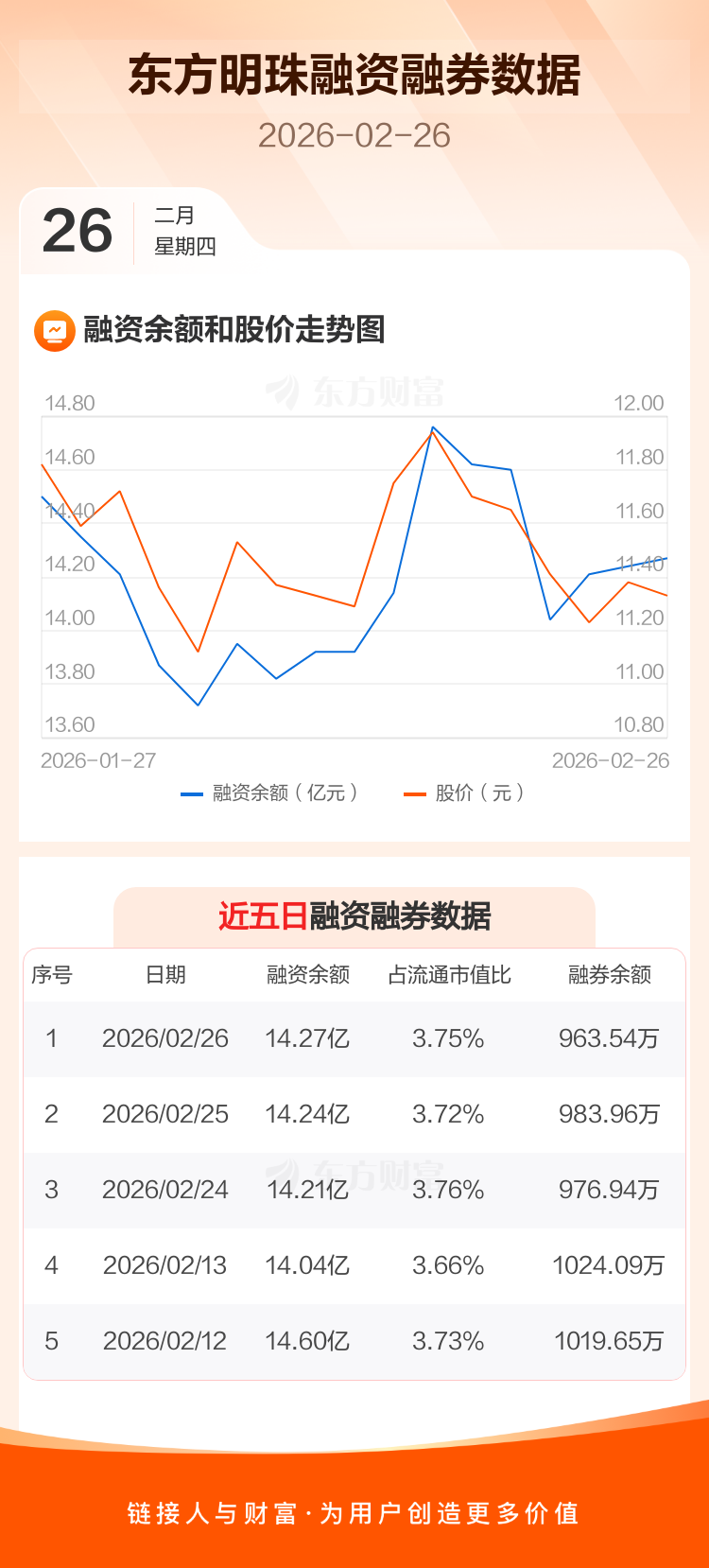交易所最新数据显示,东方明珠于2026年2月26日获融资买入6922.55万元,融资偿还6582.89万元,当日融资净买入339.67万元。目前,该股融资余额14.27亿,占流通市值比例为3.75%。