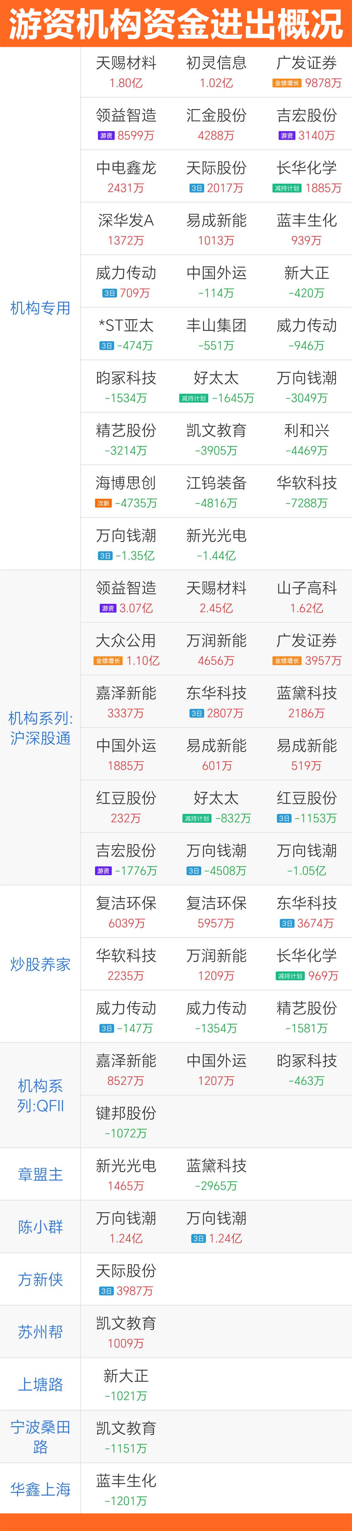 新黄浦图一是涨停梯队及所属题材概况。图二是游资机构资金出入概况。图三是资金流入的