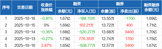 浦东金桥:融资净偿还188.7万元,融资余额1.67亿元(10-16)