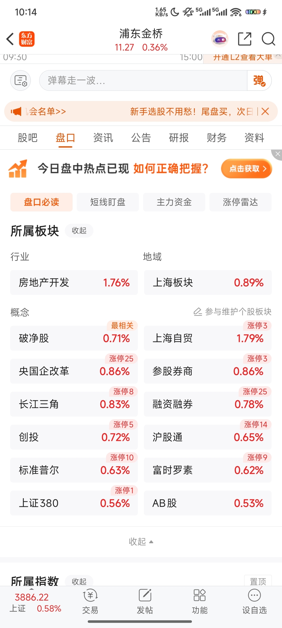 $浦东金桥(SH600639)$ 涨赢板块吧