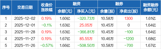 浦东金桥:融资净偿还320.73万元,融资余额1.6亿元(12-02)