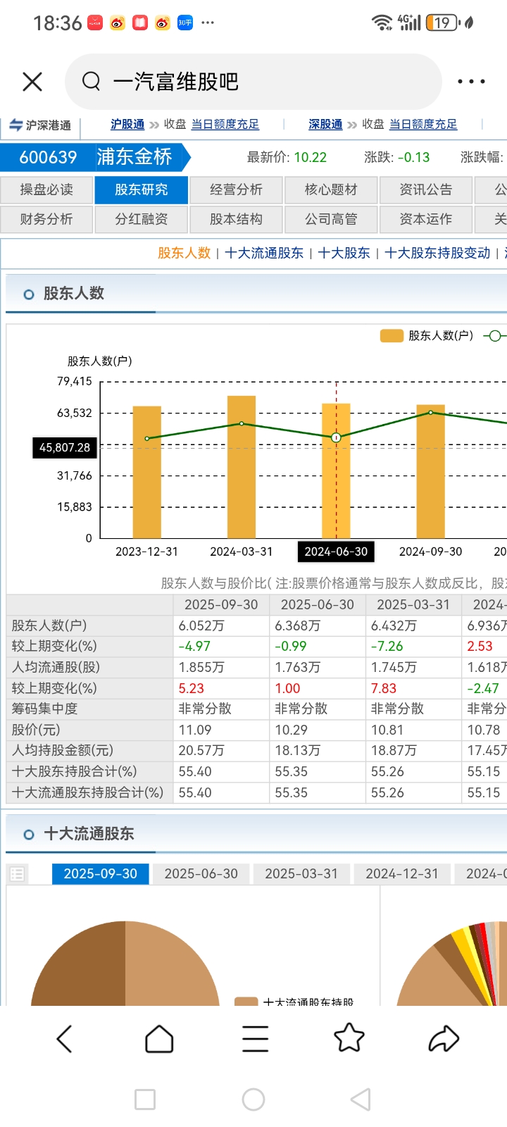 浦东金桥的股东人数比较多持有股票资金比较少都是散户,筹码太分散没有实力机构