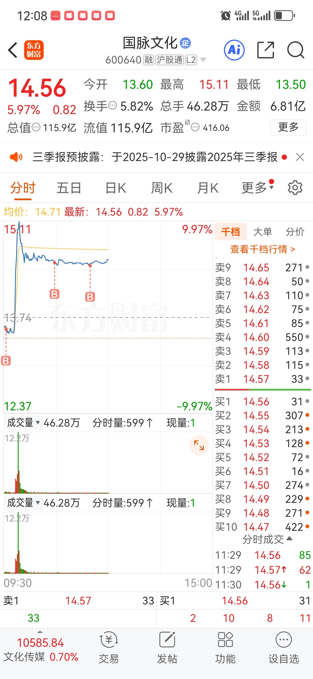 $国脉文化(SH600640)$ 今天必须格局,你们卖吧