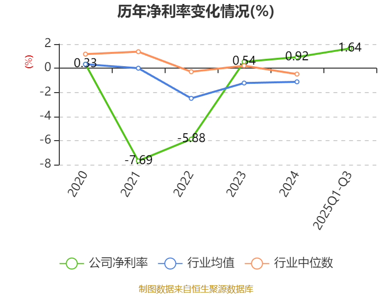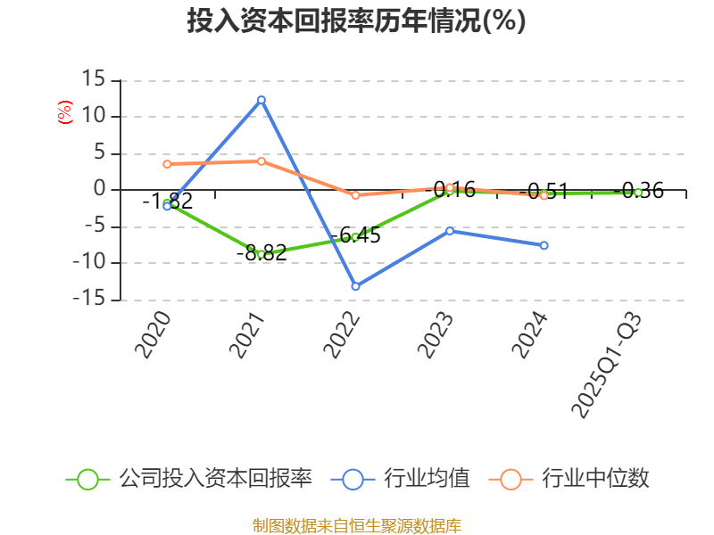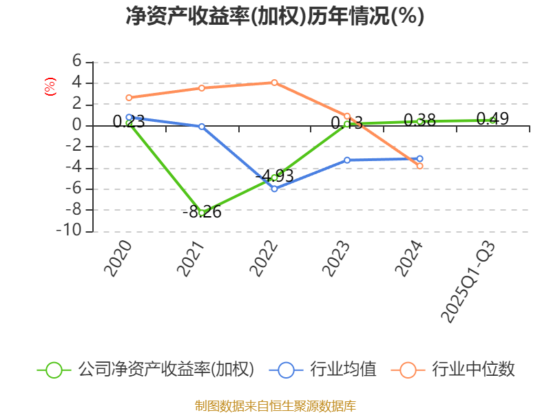 盈利能力方面, 2025年前三季度公司加权平均净资产收益率为0.49%,同比上升0.15个百分点。公司2025年前三季度投入资本回报率为-0.36%,较上年同期上升0.06个百分点。