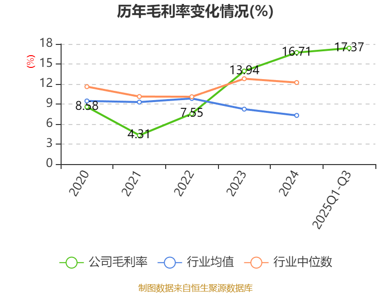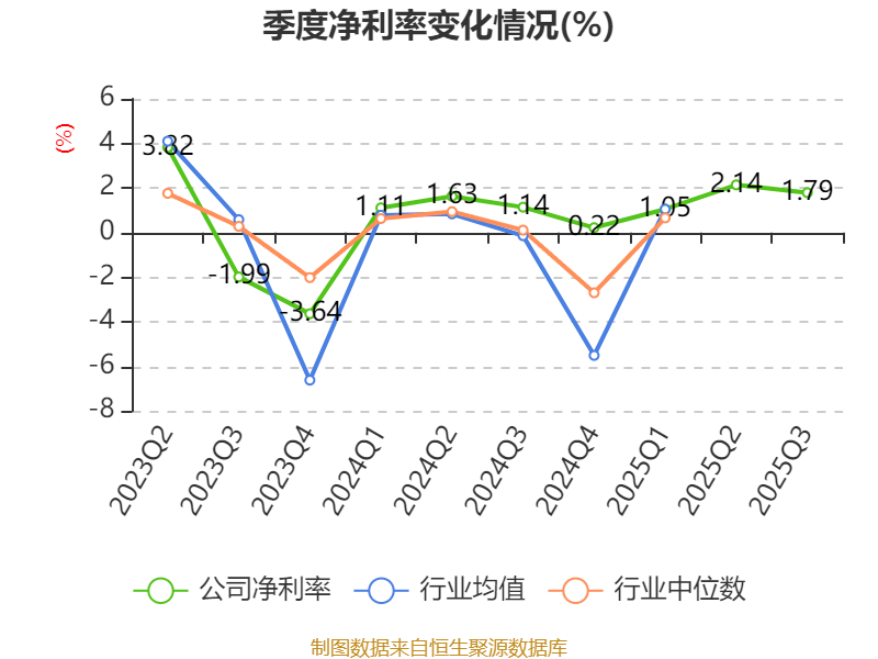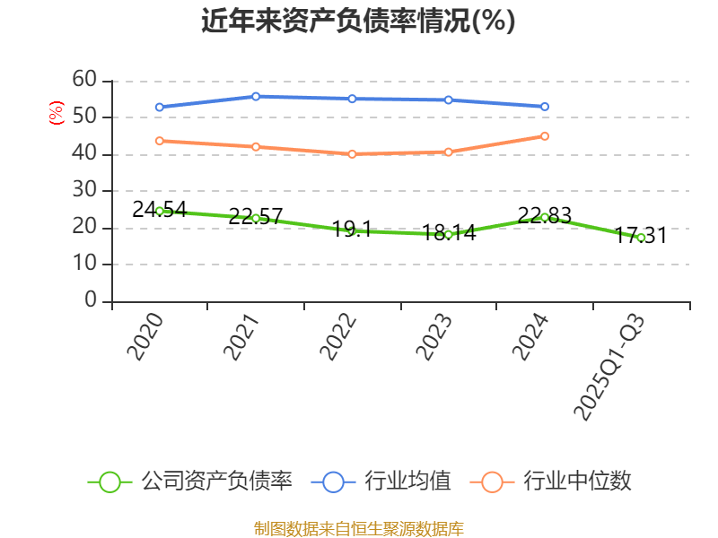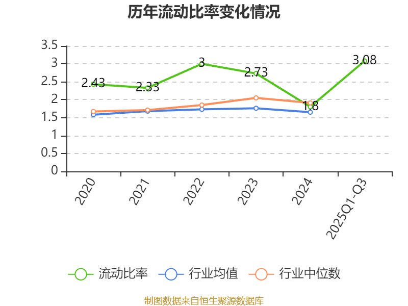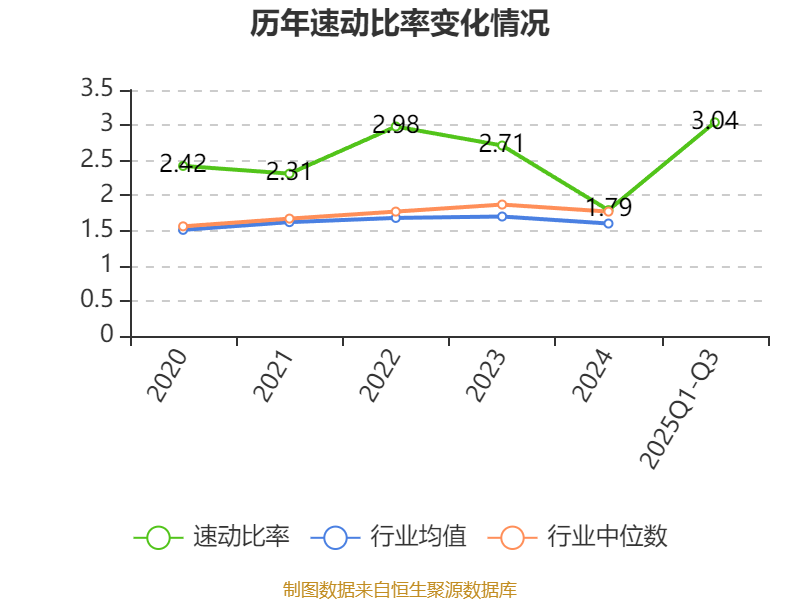 2025年前三季度,公司流动比率为3.08,速动比率为3.04。