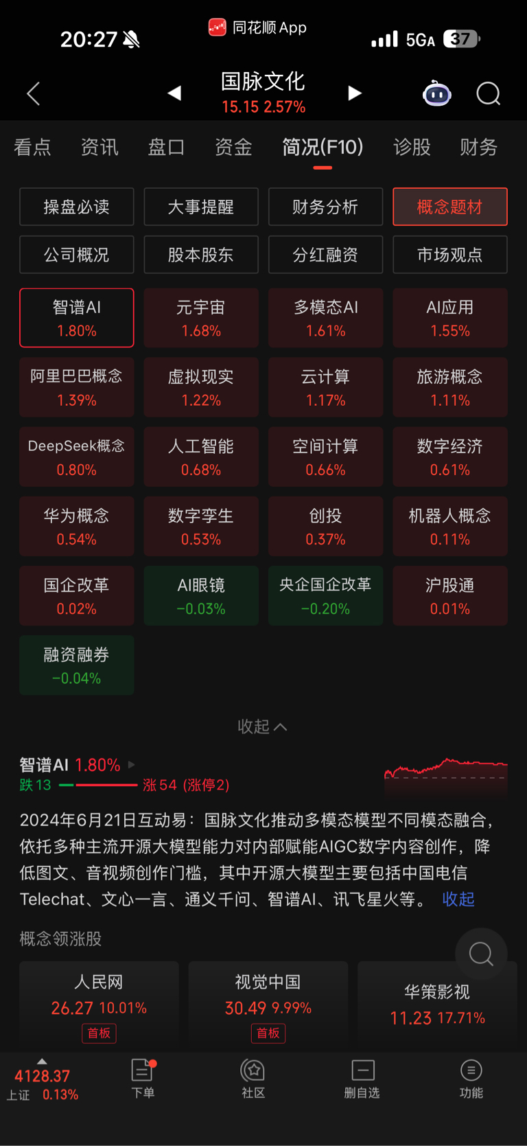 $国脉文化(SH600640)$ 今天拉短剧你不尽如人意,明天拉智谱看你表演