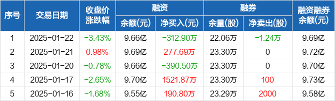万业企业:融资净偿还312.9万元,融资余额9.66亿元(01-22)