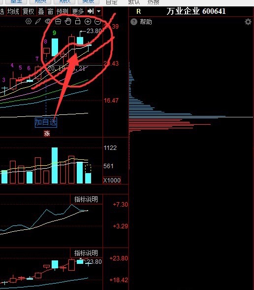 学看起飞均线:象这种4日均线临7日均线不死叉又上弯的走式,基本上都会大阳而升万业