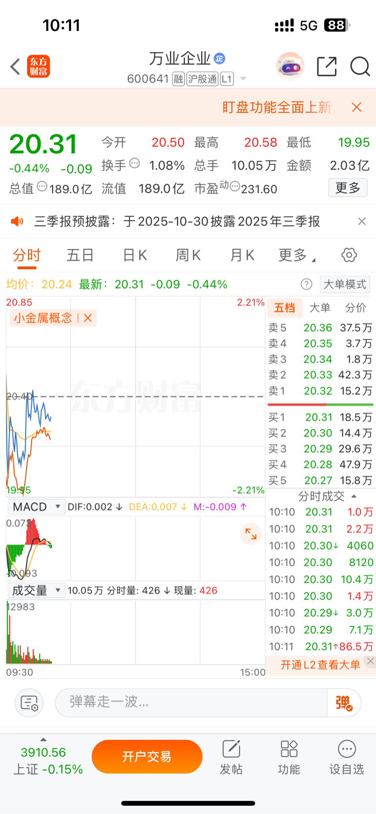 $万业企业(SH600641)$ 跟着稀有金属走的 挺好的