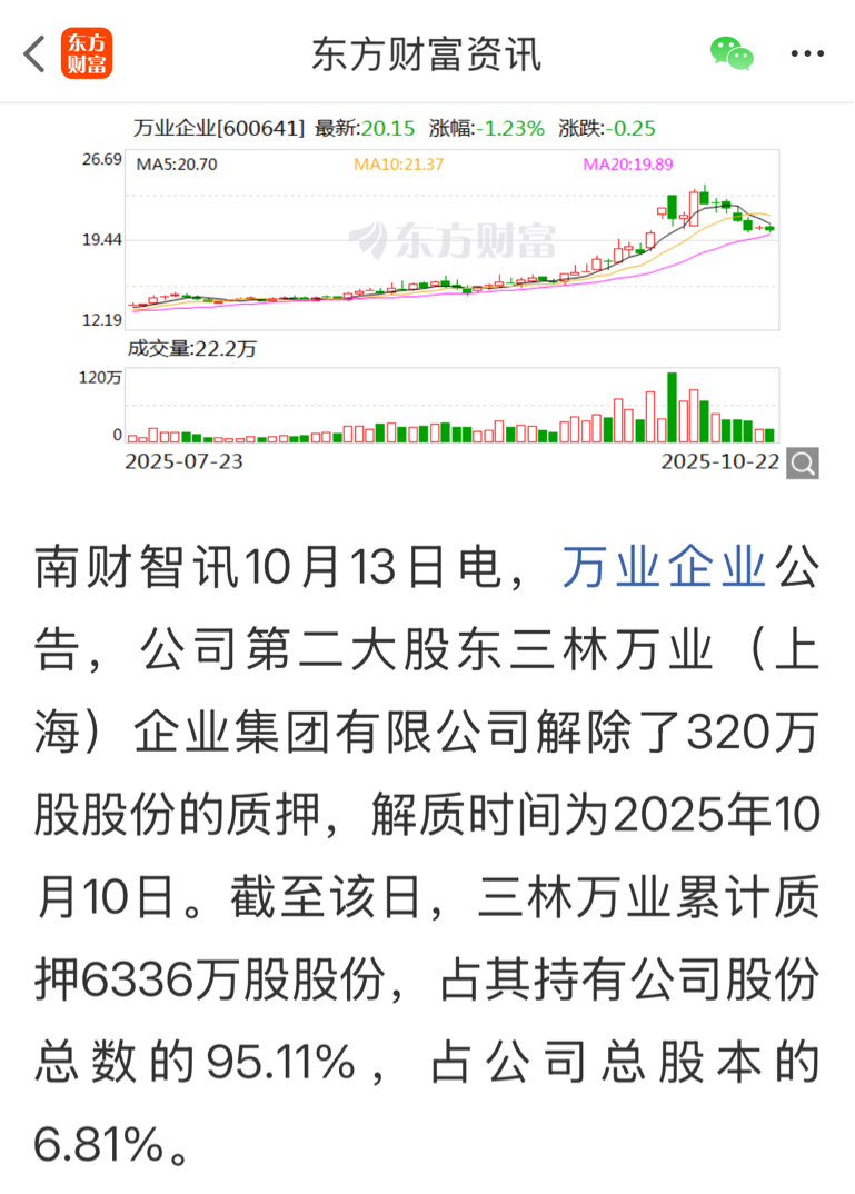 $万业企业(SH600641)$ 还被质押着,哎,估计好难跌了