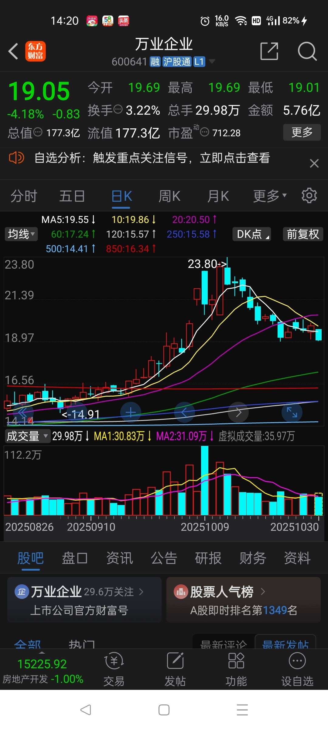 下降通道再次打开。万业有脱单必破必跌。散了吧。今天已经不是下跌中继而是继续下跌了