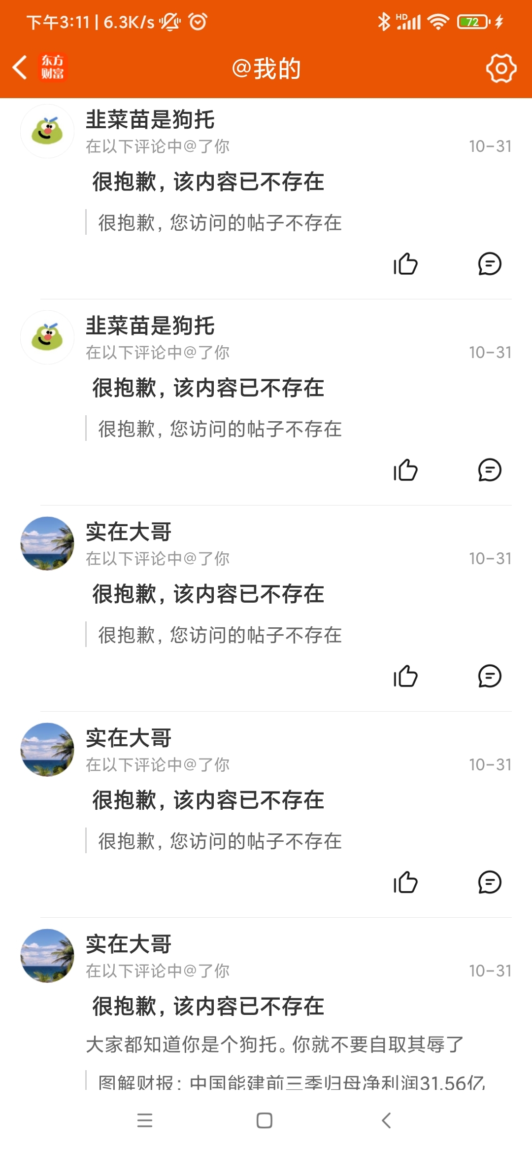 $万业企业(SH600641)$ $平潭发展(SZ000592)$ 我要告诉你们两个狗托@实在大哥 < < @韭菜苗是狗托 < < 你们尽管多发发,反正我看都不去看直接批量删除,谁会像你们这群狗托一样把我每个帖子都看一遍然后下面留言。知道你们破防了。没事,你们发的越多越生气。有啥办法,谁让你们是领狗粮的狗托。