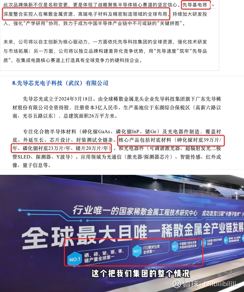 这句话很重要,先导的实控人是全球最大且唯一的稀散金属,无论最近的航天还是光芯片都是大量使用稀散金属的,先导公开说了会深度整合实控人的稀散金属资源+高端电子材料。