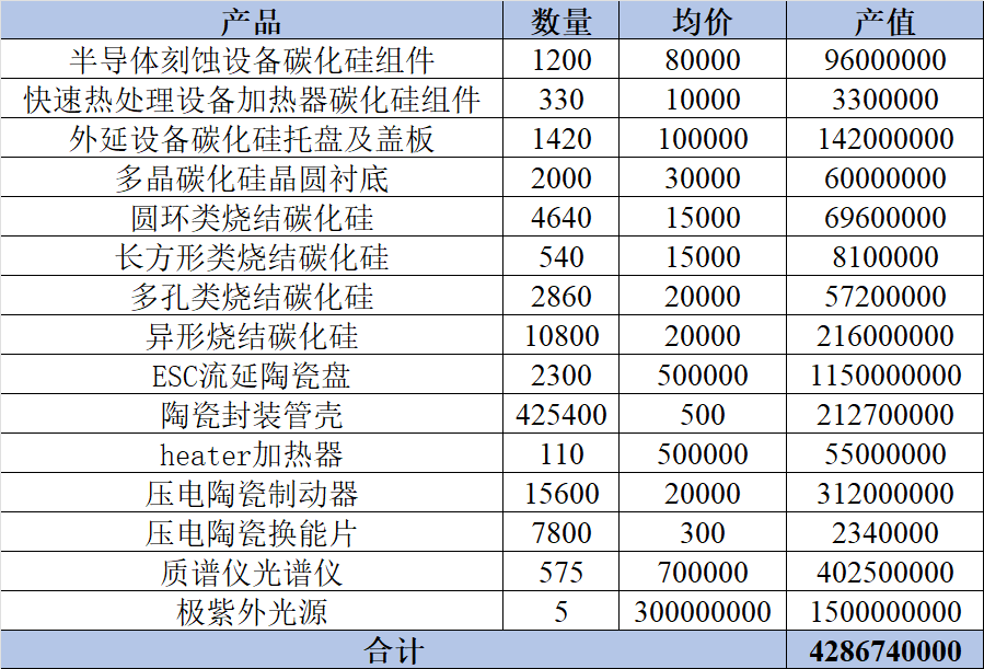 根据衢州陶瓷公司向衢州市生态环保局提交的环评报告,本人粗略的计算了一下其各个产品的年产值,产品均价是根据业内供应商的报价计算的平均值,可能和衢州陶瓷的售价有一定的偏差,但偏差应该不大,衢州陶瓷项目建成达产后,预计能形成40亿元左右的年产值,按半导体零部件平均毛利率45%、净利润率20%的水平计算,满产满销后,预计可为上市公司带来每年40亿元营业收入、8亿元净利润的业绩表现。(注:数据都是本人辛苦整理的,要是有人觉得是假的,直接拉黑我就行,不要在我贴子里冷嘲热讽,请体现一下个人素质,尊重一下别人的劳动成果。)