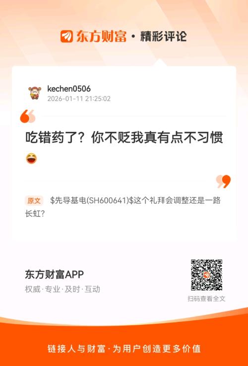 温馨提示: 1.根据《证券法》规定,禁止编造、传播虚假信息或者误导性信息,扰乱证券市场;2.用户在本社区发表的所有资料、言论等仅代表个人观点,与本网站立场无关,不对您构成任何投资建议。用户应基于自己的独立判断,自行决定证券投资并承担相应风险。《东方财富社区管理规定》