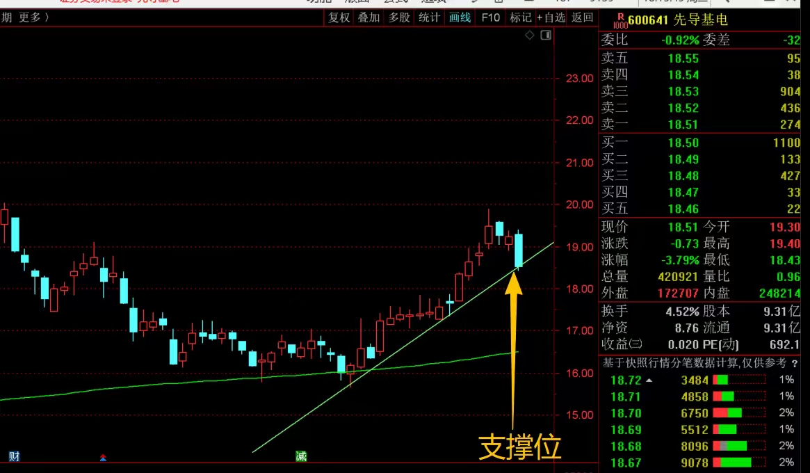 $先导基电(SH600641)$ 近期反弹趋势还不错,连续小拉升之后,这几天高位调整后小回落下来,短线重点看脚底趋势线的支撑情况,能稳住就没问题,但有效跌破就要注意近期的回调风险,控制好仓位应对。#炒股日记# #收盘点评#