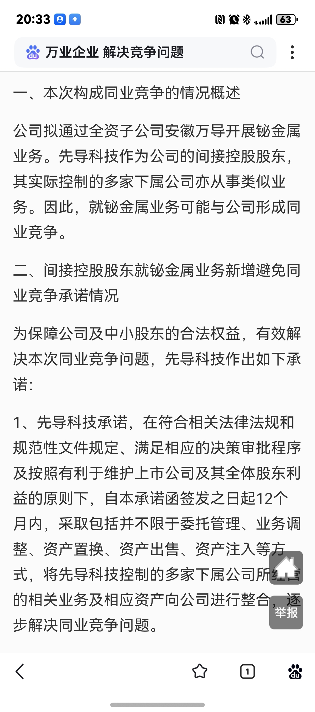 明天,16号满承诺一年了!解决了同业竞争问题没?