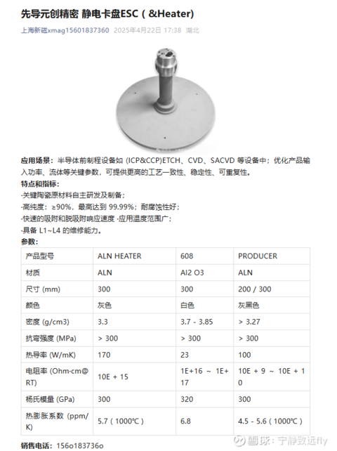 根据相关资料12 英寸静电卡盘珂玛在验证,先导已经在销售