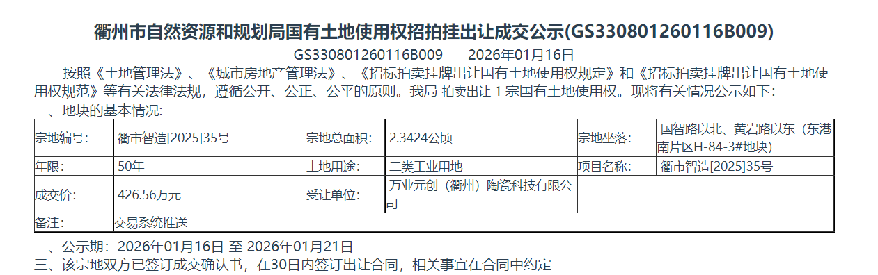 万业元创(衢州)科技有限公司土地都买了,还怀疑陶瓷、科学仪器和光刻机光源项目吗
