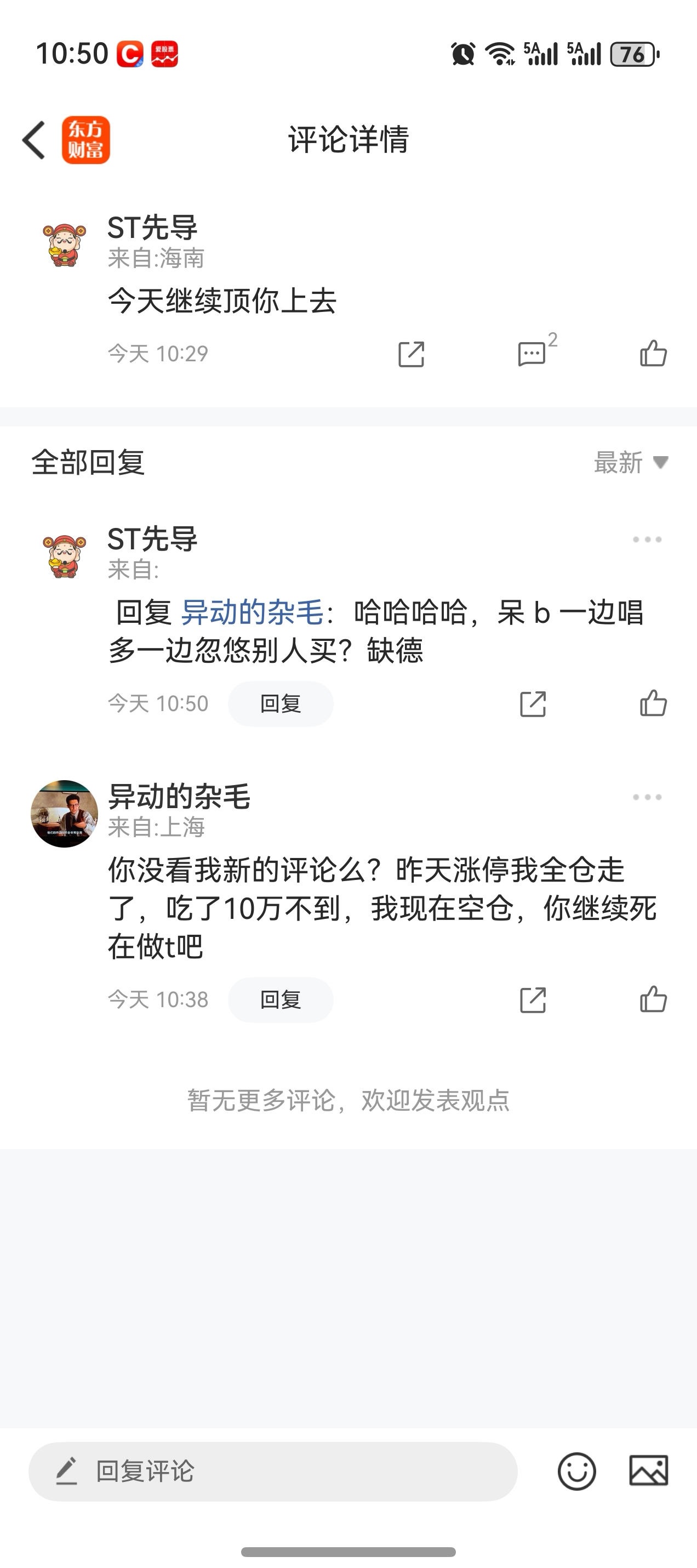 温馨提示: 1.根据《证券法》规定,禁止编造、传播虚假信息或者误导性信息,扰乱证券市场;2.用户在本社区发表的所有资料、言论等仅代表个人观点,与本网站立场无关,不对您构成任何投资建议。用户应基于自己的独立判断,自行决定证券投资并承担相应风险。《东方财富社区管理规定》