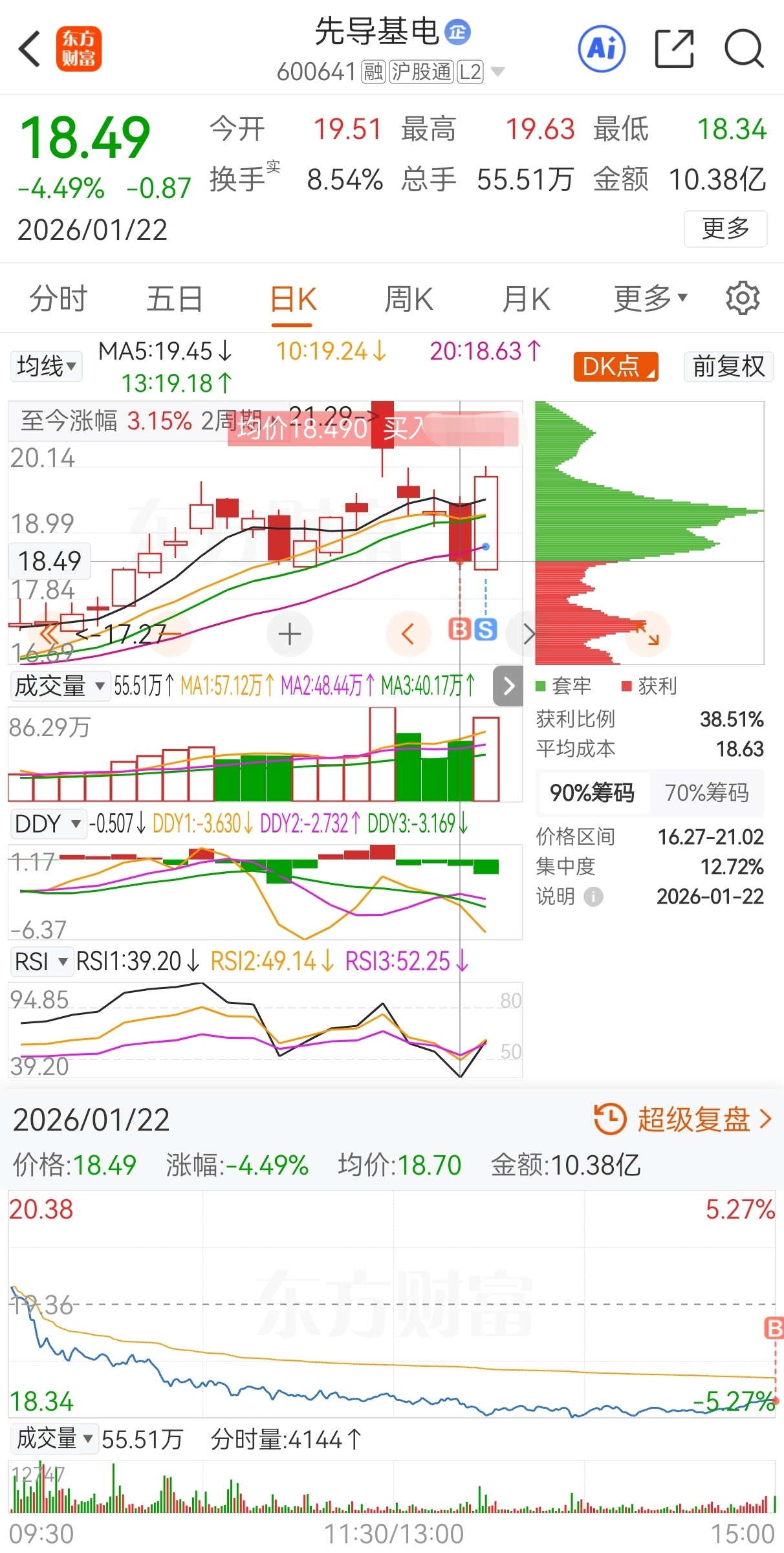 今买明卖,18.49买,18.75卖,实盘隔夜套利先导基电,成功收米走人!