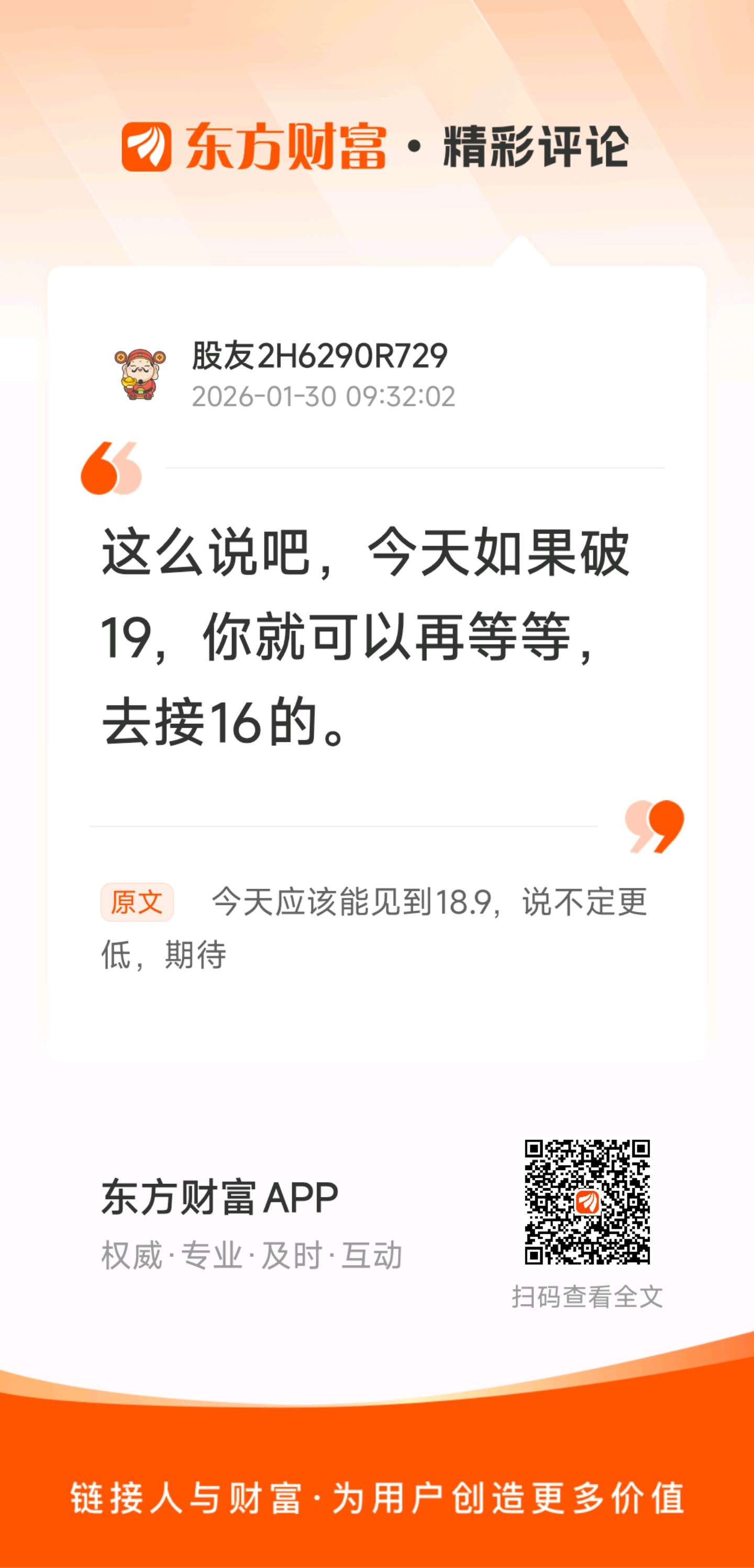 温馨提示: 1.根据《证券法》规定,禁止编造、传播虚假信息或者误导性信息,扰乱证券市场;2.用户在本社区发表的所有资料、言论等仅代表个人观点,与本网站立场无关,不对您构成任何投资建议。用户应基于自己的独立判断,自行决定证券投资并承担相应风险。《东方财富社区管理规定》