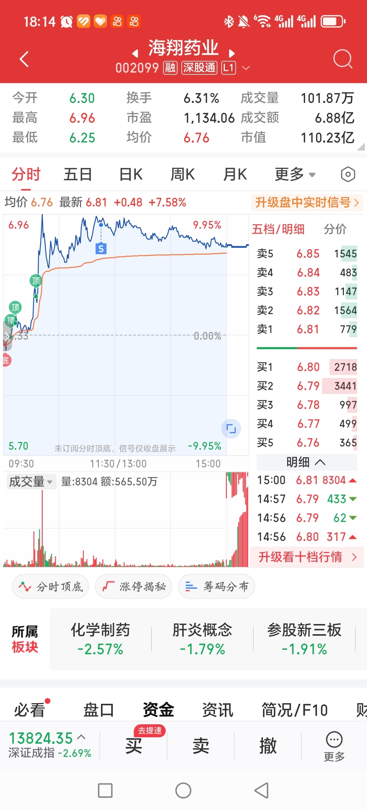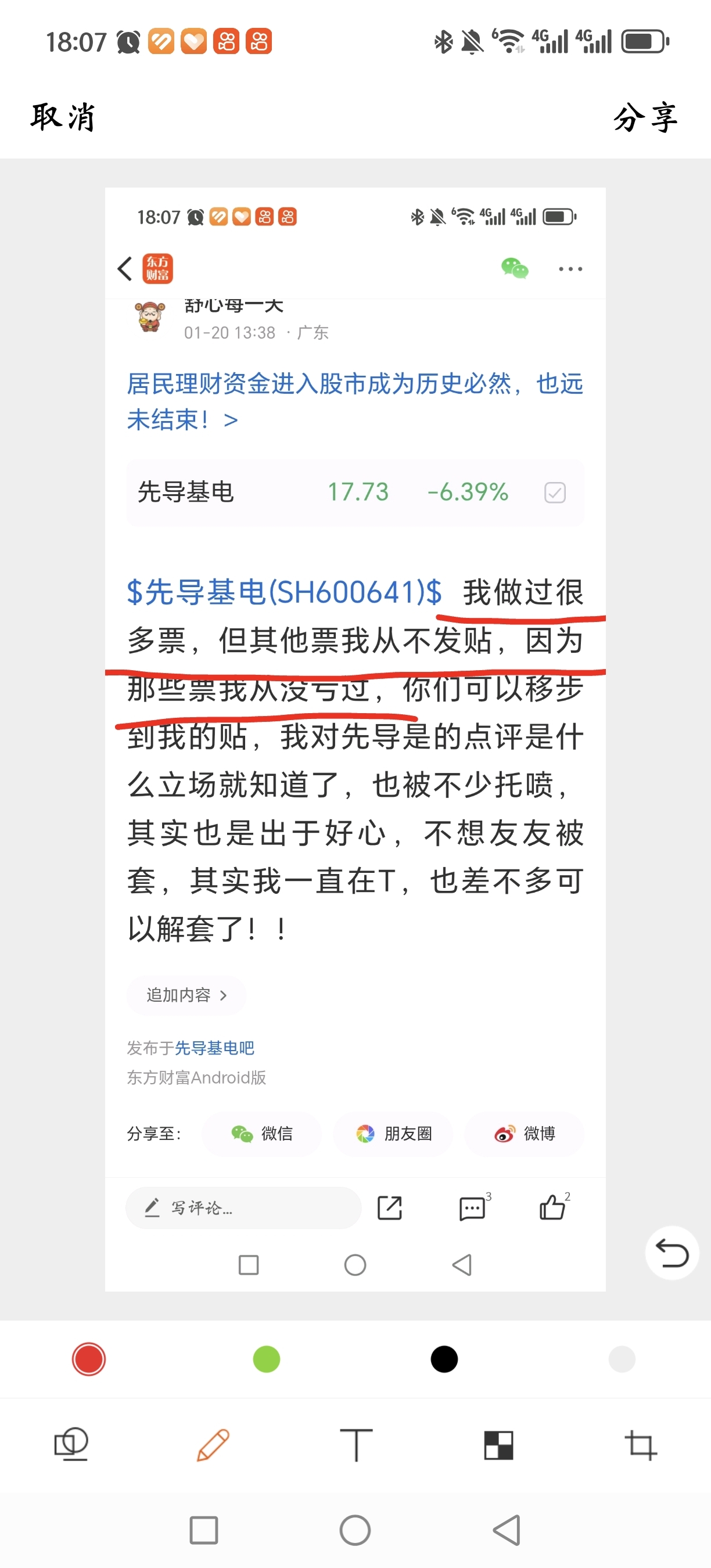 $先导基电(SH600641)$ 说真的,如果我换了股,早赚回本了(我也解释不清楚为什么不舍得割肉走,甚至2次回本没走,又套下去了)刚刚看到一个股民说,涨8个点那天追了先导,其实我想告诉喜欢追涨杀跌的股民,找真正洗盘的股埋伏,总比追涨强。如图