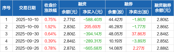 申能股份:融资净偿还588.4万元,融资余额2.77亿元(10-10)