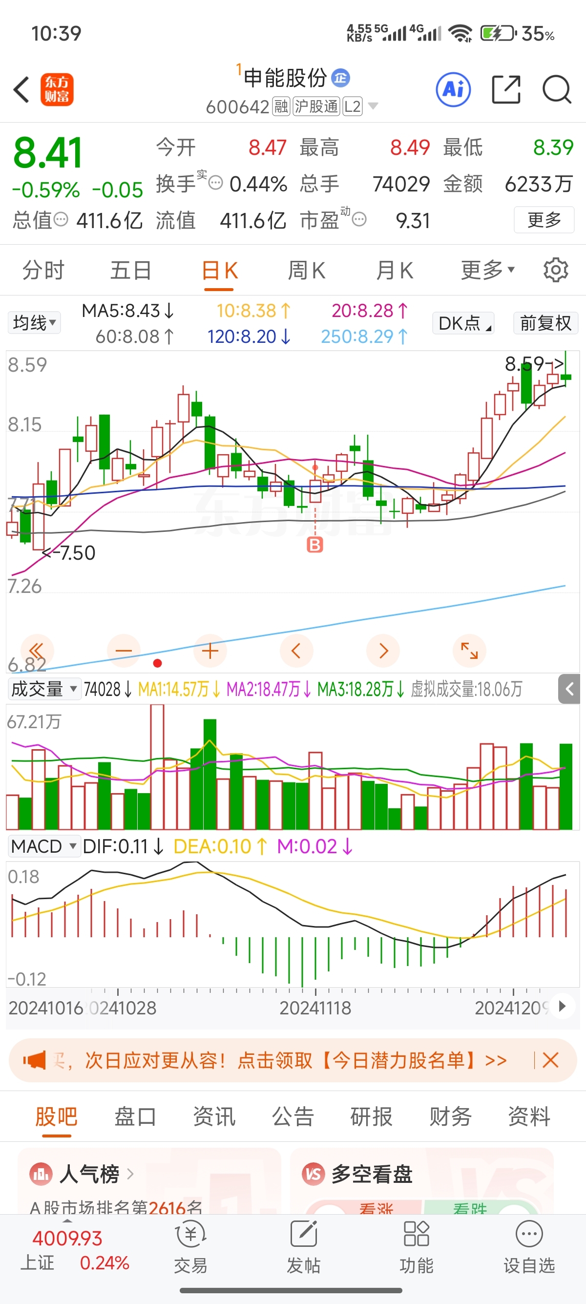 去年11月份买的申能,一年过去了还在原地。去年12月份买的农行,一年下来都快要翻