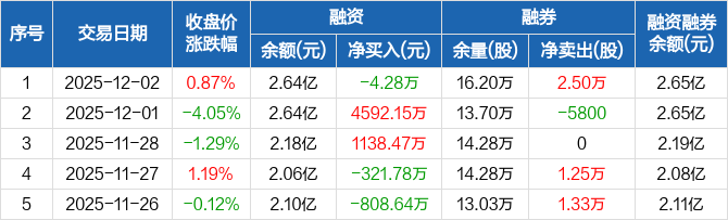 申能股份:融资净偿还4.28万元,融资余额2.64亿元(12-02)
