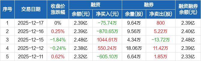 申能股份:融资净偿还75.74万元,融资余额2.39亿元(12-17)