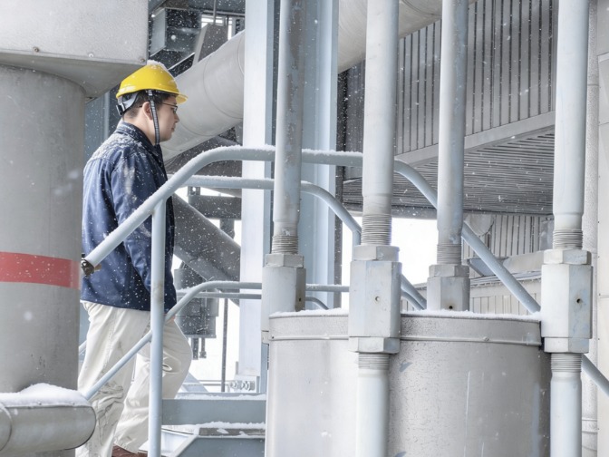 在申能外二发电厂,巡操员在雪中进行锅炉巡检,用一丝不苟的坚守,确保设备稳定运行。