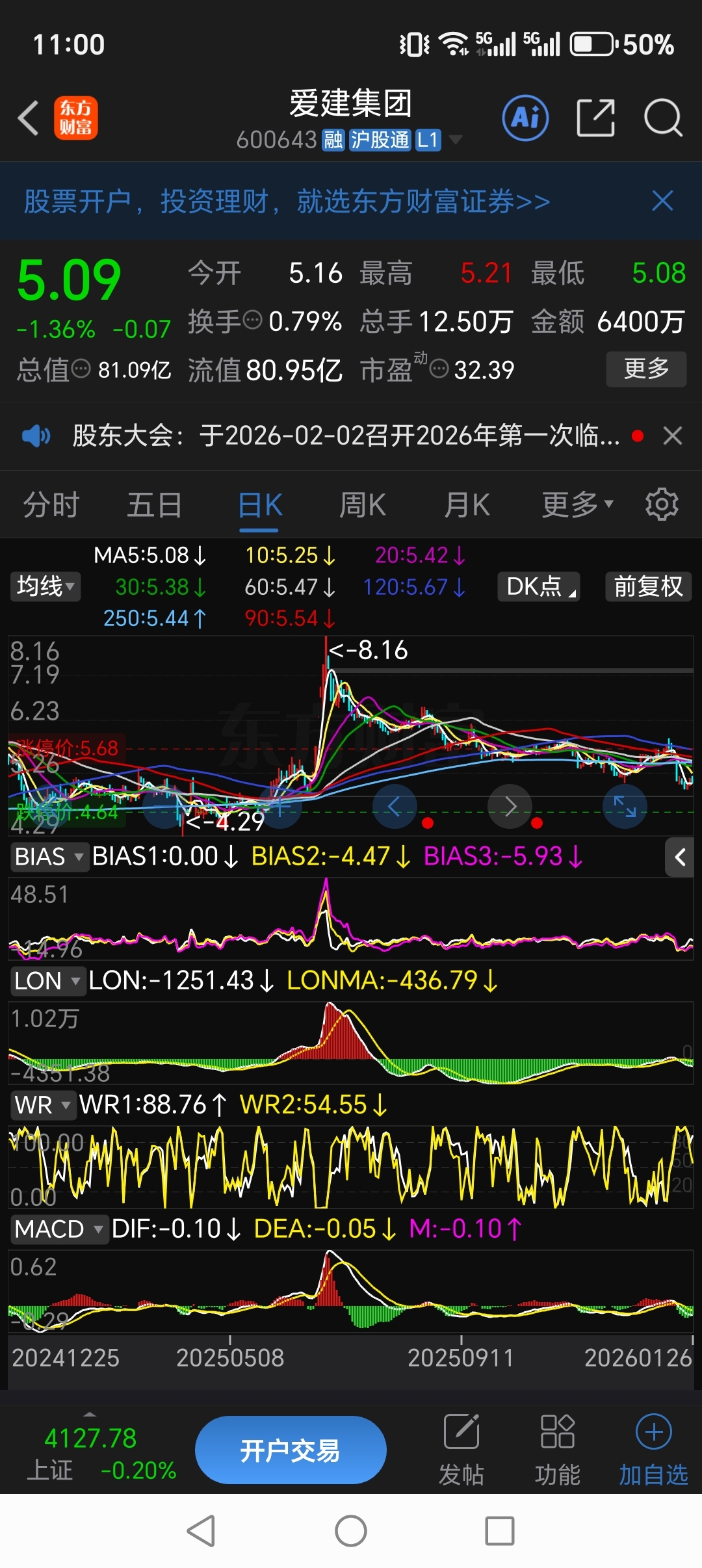 $爱建集团(SH600643)$ 看它还有一个高开缺口一个低开跳空缺口。想赚钱就得丢着不理。这个低开跳空缺肯定会补上的。就是时间长短问题。