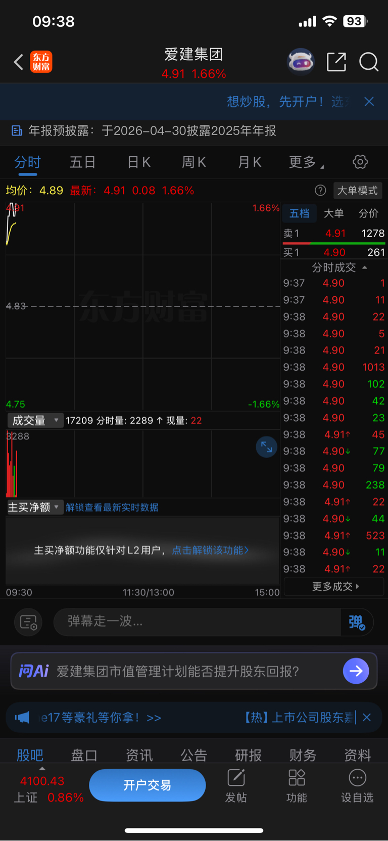 $爱建集团(SH600643)$ 这分时图,不知道的还以为是涨停开板了