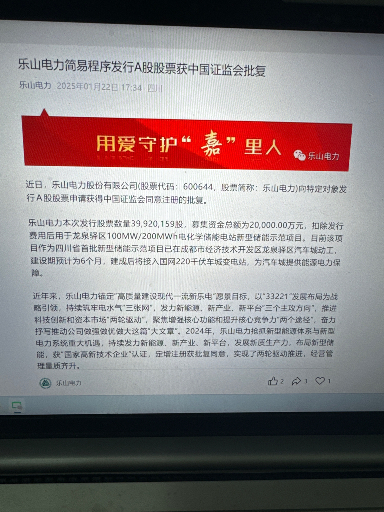 $乐山电力(SH600644)$ 听这样要发行很多股了,感觉要跌