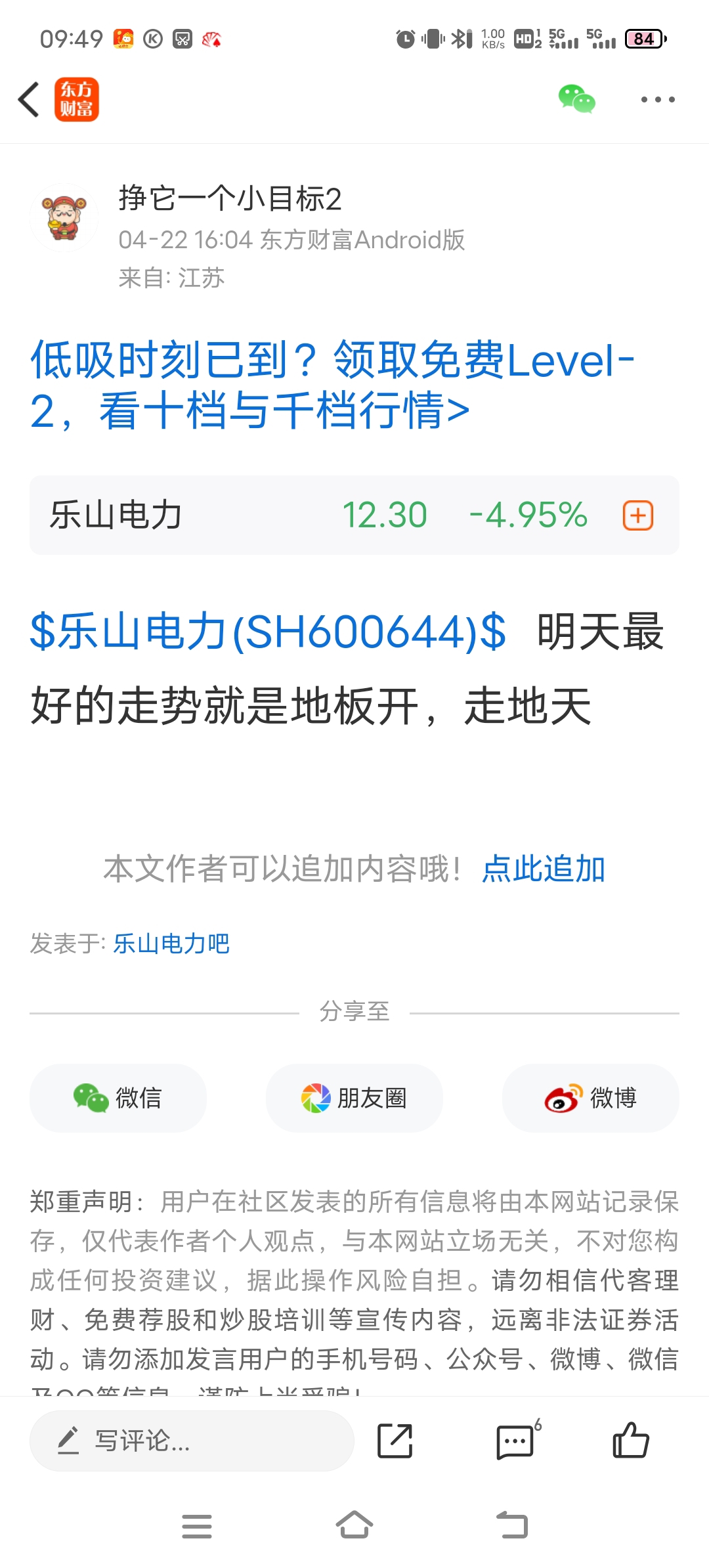 温馨提示: 1.根据《证券法》规定,禁止编造、传播虚假信息或者误导性信息,扰乱证券市场;2.用户在本社区发表的所有资料、言论等仅代表个人观点,与本网站立场无关,不对您构成任何投资建议。用户应基于自己的独立判断,自行决定证券投资并承担相应风险。《东方财富社区管理规定》